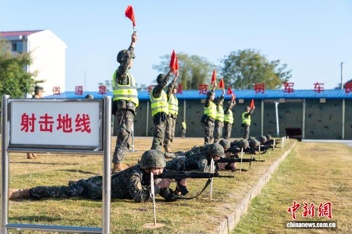 图为武警民卒正正在停止主动步枪射打。施朝洲 摄