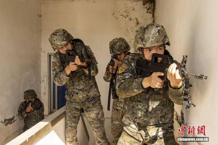 图为武警民卒慎密联合冲入方针衡宇。刘朝 摄